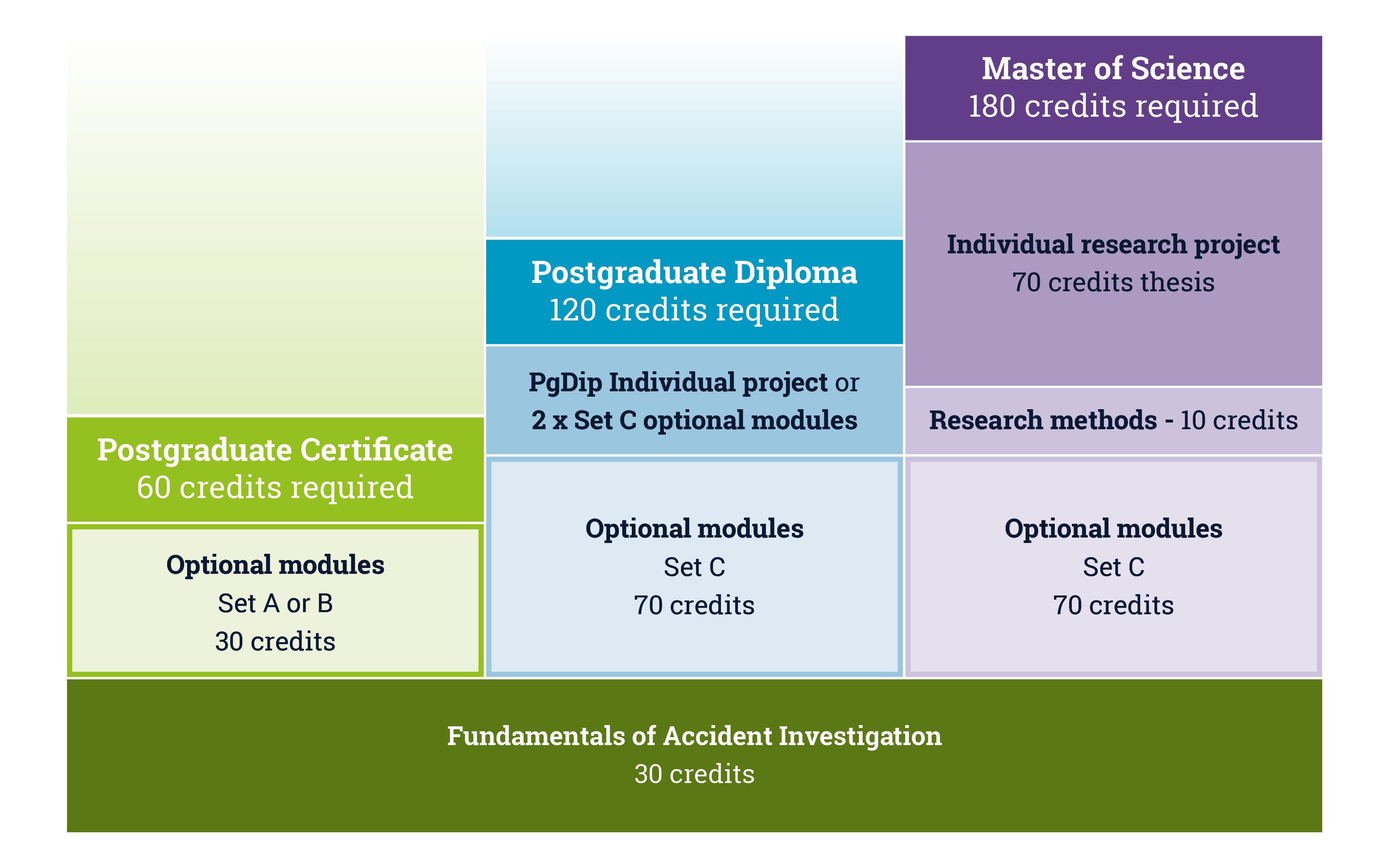 Many of our Continuous Professional Development (CPD) short courses within the Safety and Accident Investigation Centre are available as standalone CPD courses. Our postgraduate programme in Safety and Accident Investigation allows you to combine the Fundamentals of Accident Investigation and Applied Road Accident Investigation courses towards a part-time Postgraduate Certificate (PgCert), Postgraduate Diploma (PgDip) or a Master of Science (MSc) qualification.