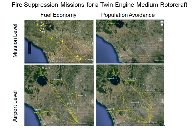 - Rotorcraft are assessed along realistic 4D trajectories at real locations across Europe. Assessments are made at three levels – a single flight of one rotorcraft, a number of rotorcraft flights on a reference day at a particular heliport, and a global fleet operating over the period of a month.
